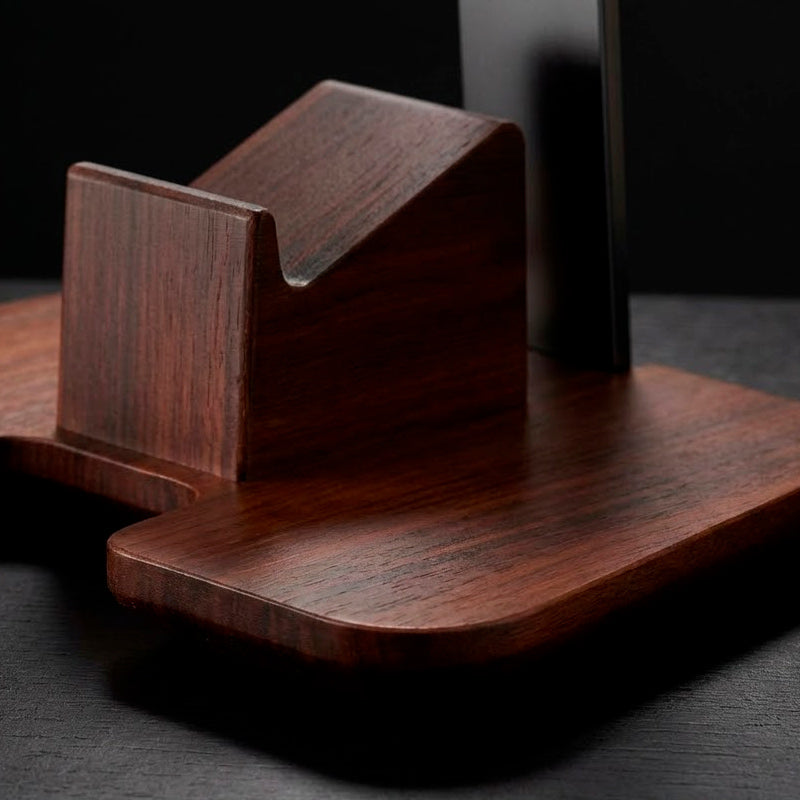 Base de apoio reta e de madeira: repouso completo, segurança máxima. Cuida do seu fone como ele merece, NEUA Style.