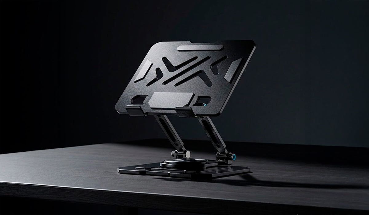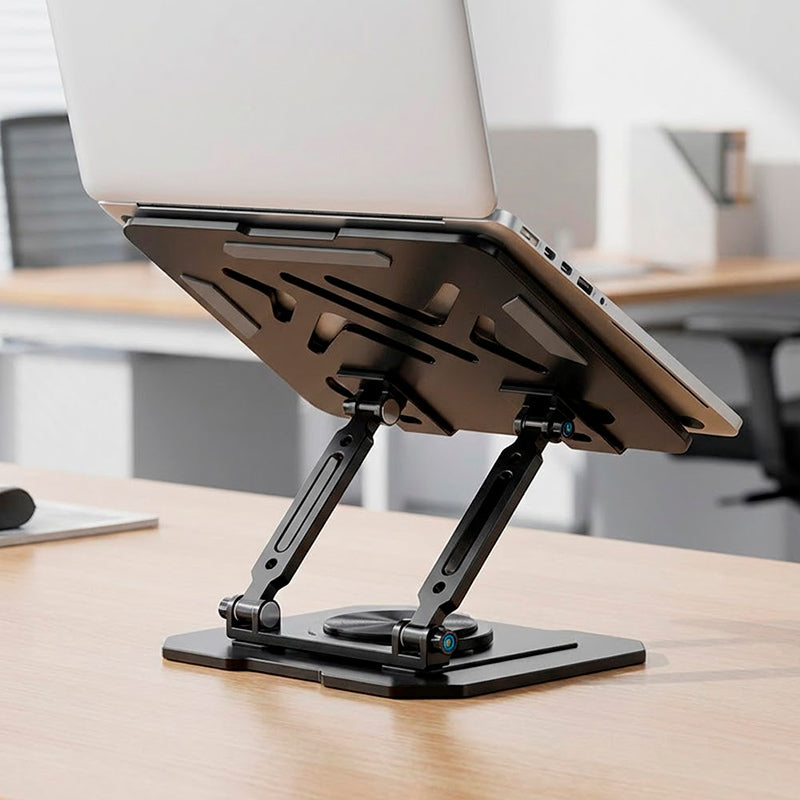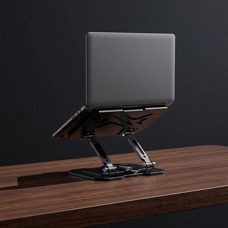 A base vazada favorece o resfriamento natural, garantindo melhor circulação de ar durante o uso. As borrachas antiderrapantes, tanto na base quanto no apoio, asseguram estabilidade total. O resultado é simples e direto: sem arranhões, sem deslizamentos.