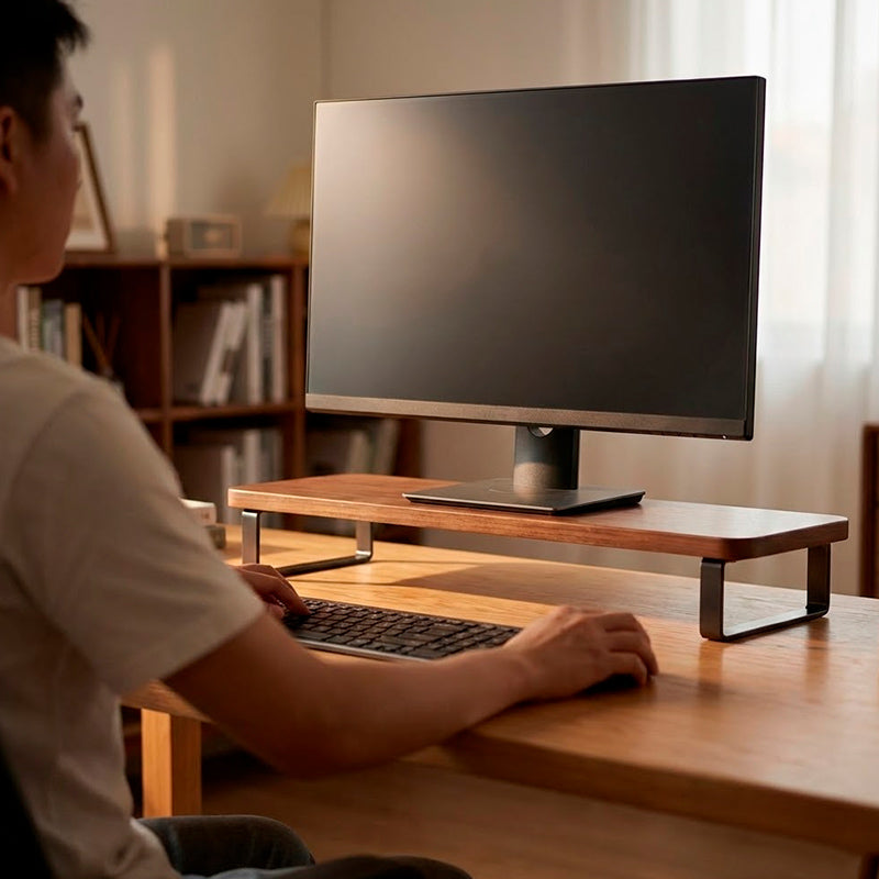 Cada centímetro liberado embaixo do monitor vira área útil.